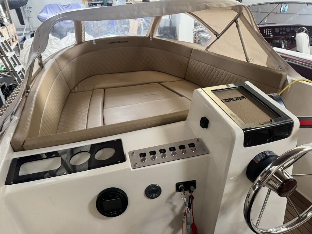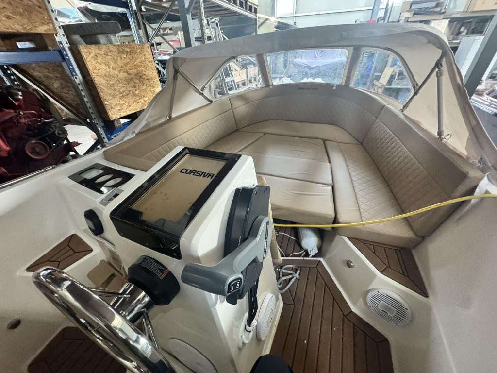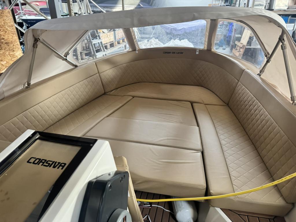 Die Corsiva 595 Tender ist bekannt für ihre moderne Linienführung, den hohen Freizeitwert und das großzügige Platzangebot im Verhältnis zur Bootsgröße. Dank der cleveren Raumaufteilung bietet sie angenehme Sitzmöglichkeiten für mehrere Personen und schafft eine einladende Atmosphäre an Bord.