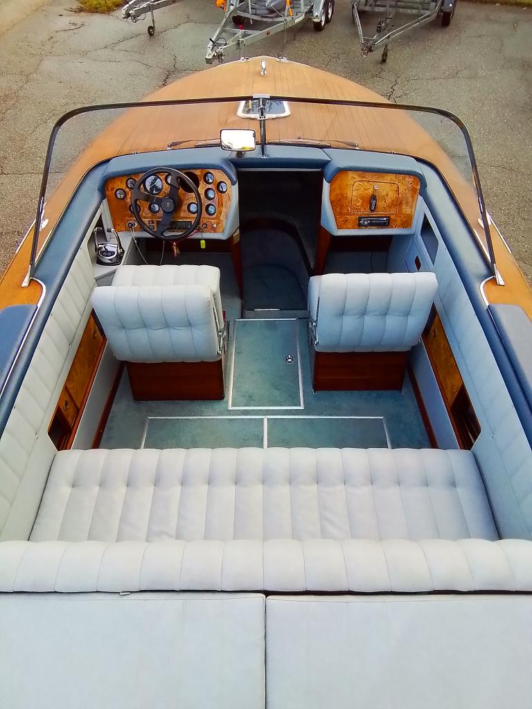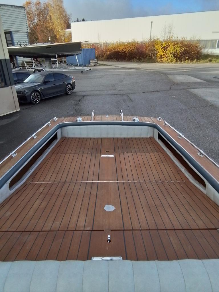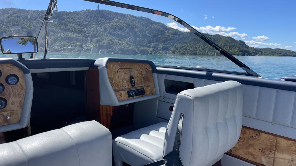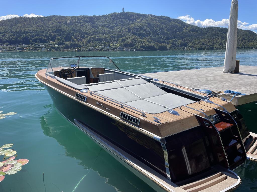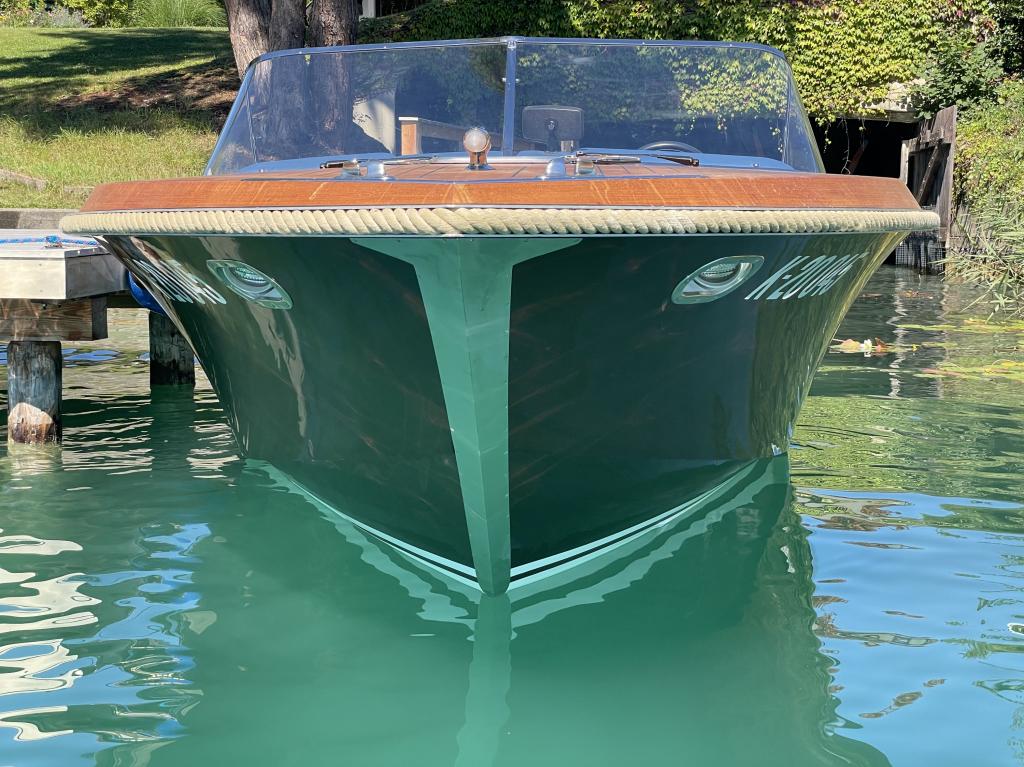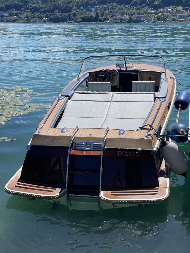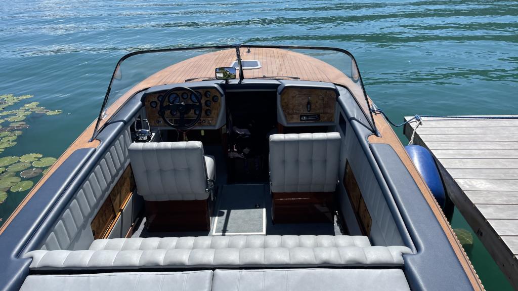 Mit dem Rivera Special zeigt Pedrazzini die große handwerkliche Tradition der Schweizer Bootsbaukunst. Das Modell verbindet zeitlose Eleganz mit moderner Fahrdynamik, da von den Spezialisten von Boote Schmalzl Revival 2017 zwei starke Ilmor Motoren eingebaut wurden. Die Beschleunigung lässt das Herz von erfahrenen Kapitänen höher schlagen - Adrenalin garntiert! Besonders das makellos verarbeitete Teakdeck, dessen warme Maserung sich über das gesamte Deck legt, erinnert an die großen mediterranen Runabouts der 60er-Jahre und verleiht dem Boot seinen unverwechselbaren Charakter.